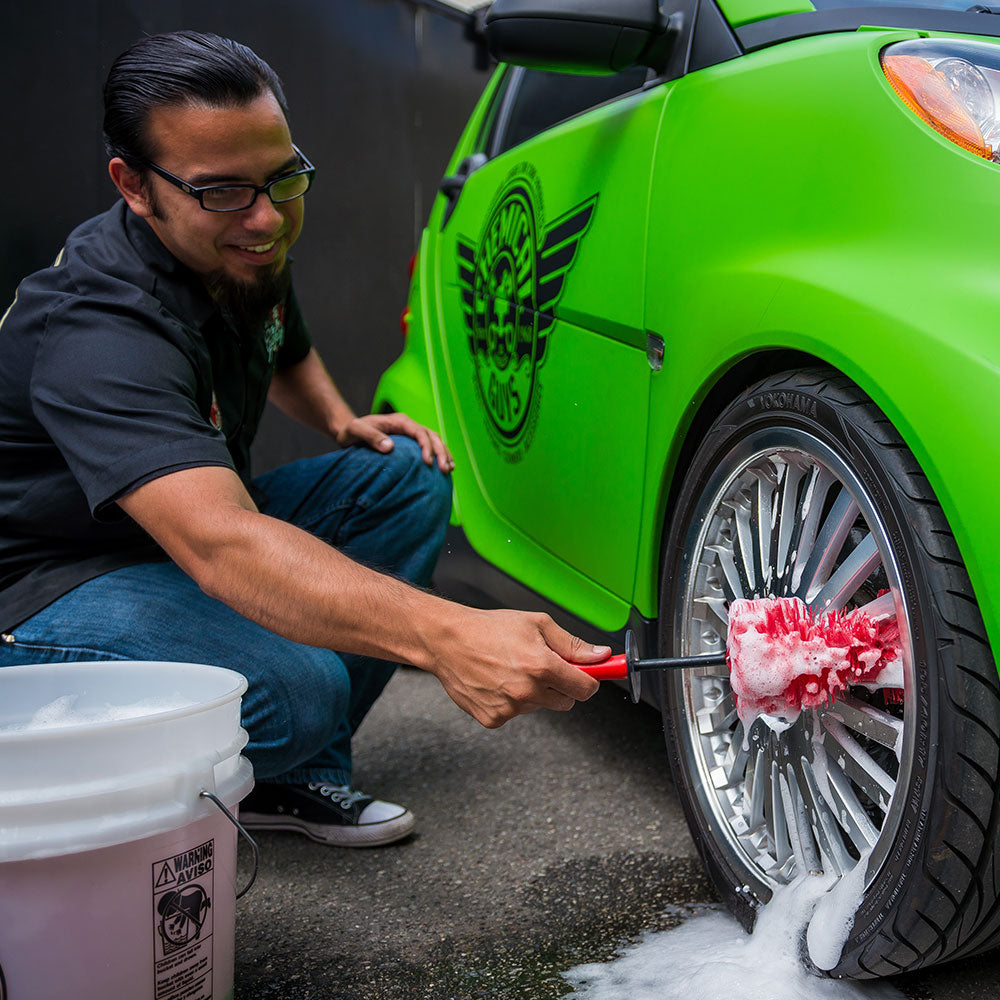 The Red Rocket Brush is a gentle. flexible brush that can bend to deep-clean all those hard-to-reach areas around your car. With two different sizes and a unique bendable spine. there is no place for dirt to hide.